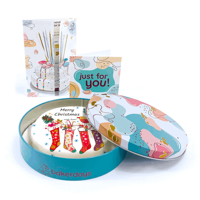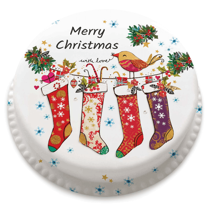 If you want to send season's greetings to multiple friends or family members then this Christmas Stocking cake is ideal. Personalise the names and the text for a lovely Christmas treat.