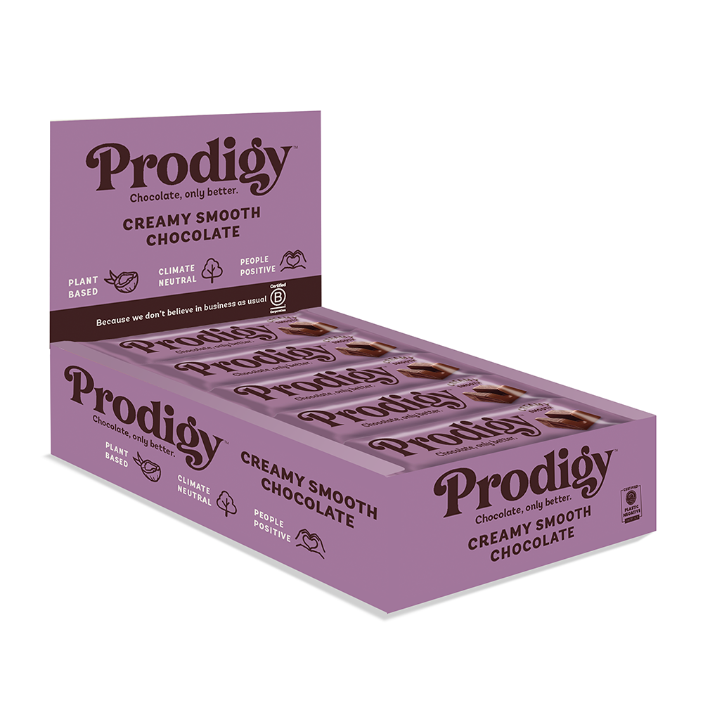 Extraordinarily smooth and creamy delivering the full chocolate hit you love. Prodigy bars have less than half the sugar of mainstream chocolate, are dairy-free, Vegan and refined-sugar free. Wrapped in plastic-free compostable packaging.