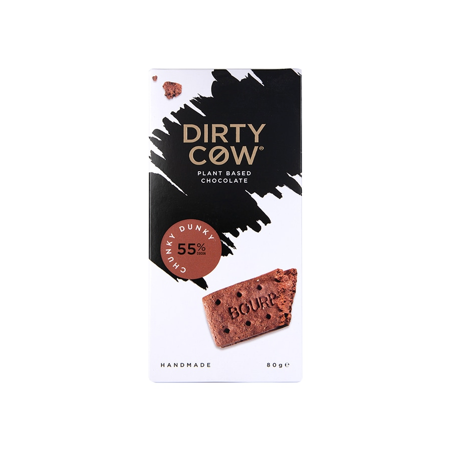 Ingredients: Dirty Cow Chocolate [Cocoa, Sugar, Cocoa Butter, Soy Lecithin, Natural Vanilla], Bourbon Biscuits [Flour (Wheat Flour, Calcium, Iron, Niacin, Thiamin), Sugar, Palm Oil (Certified Sustainable), Fat-Reduced Cocoa Powder, Glucose Syrup, Dextrose, Wheat Starch, Raising Agents: Ammonium Bicarbonate & Sodium Bicarbonate, Salt, Natural Flavouring]