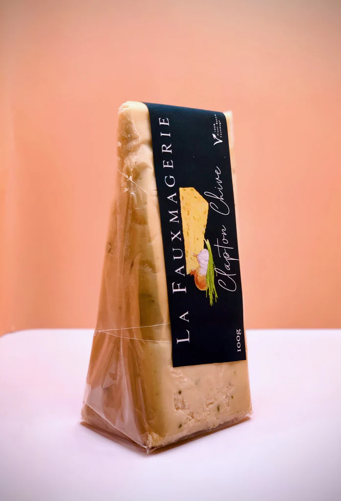 Clapton Chive is a tangy, savoury almond cheese with bold garlic notes and fresh herbs. This cheese is a delicious alternative to a Double Gloucester or Boursin, that we love to spread on crackers and toasted bread.