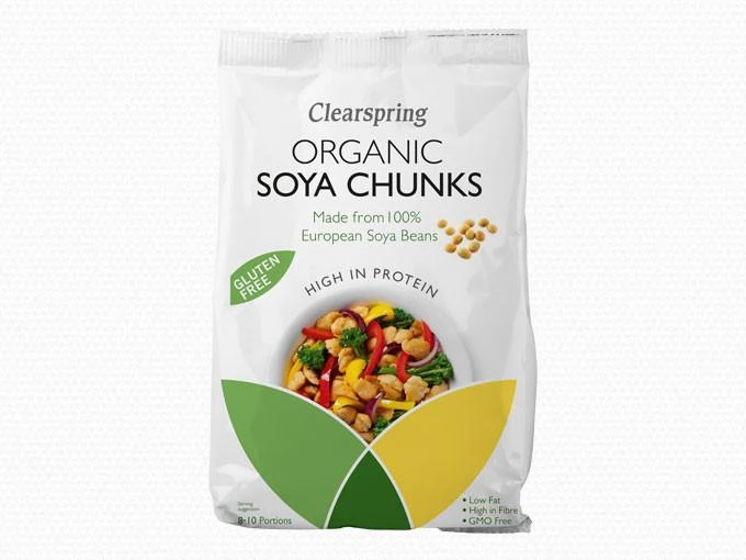 Clearspring Gluten Free Organic Soya Chunks are a quick cook vegetarian protein which can be used in a multitude of recipes instead of meat. Soya beans are simply cold pressed to remove their oil content then steamed under pressure to form chunks and finally dried. With a tender yet substantial texture it is extremely versatile and will take on the flavour of whatever dish you are cooking. One pa...