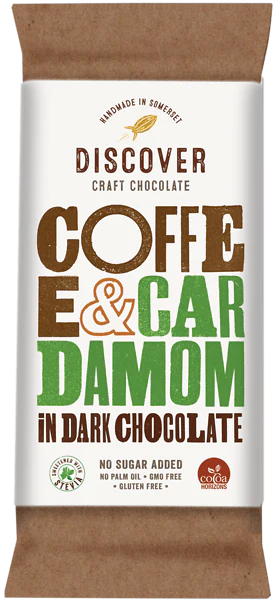 Whether you're a cappuccino-sipping, shopping mall socialite or prefer to stay indoors with a quiet cup of your favourite blend, our dark chocolate Coffee & Cardamom bar will almost definitely compliment either choice. We're confident that the unique zingy twist we've given this special coffee creation will make you feel full of beans.