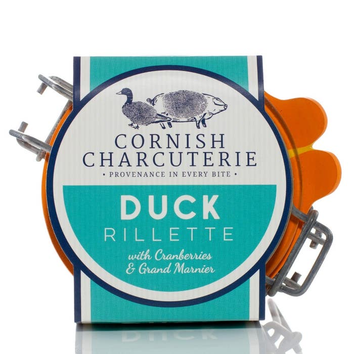 Delight in our award-winning duck rillette, an artisanal creation crafted from free-range duck legs gently poached in duck fat. This premium treat artfully blends succulent shredded meat with cranberries steeped in Grand Marnier and seasoned with aromatic spices to deliver a truly unforgettable taste experience. Perfect for those seeking a gourmet indulgence, this rillette is a standout offering from our exquisite selection at Cornish Charcuterie.