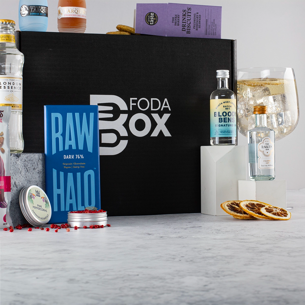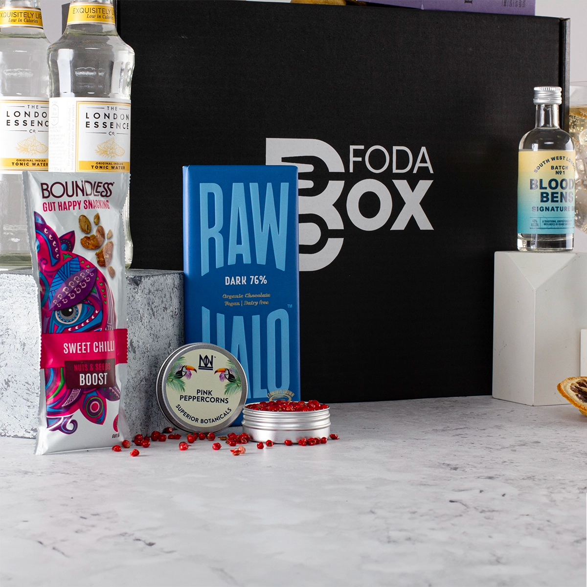 This Craft Gin & Tonic Gift Box is shipped in one of our signature eco-friendly FodaBox branded kraft boxes.