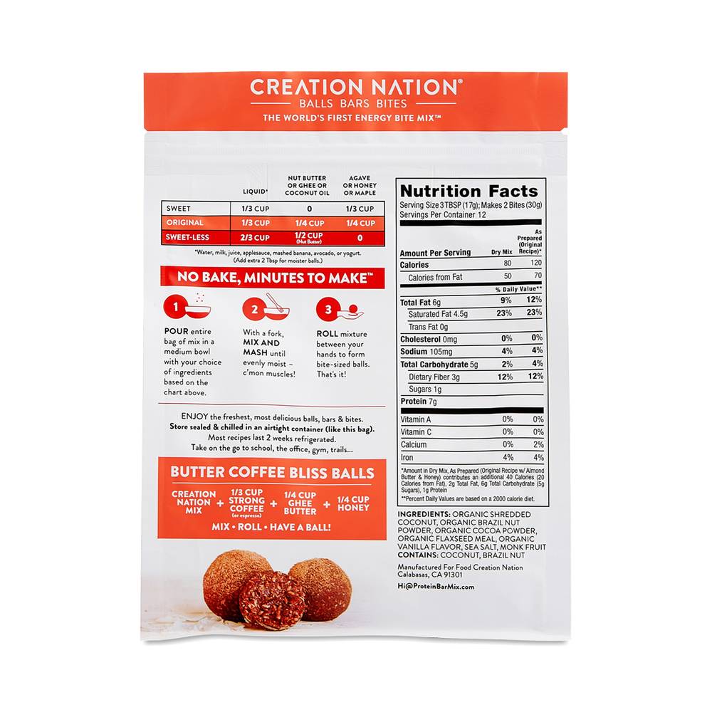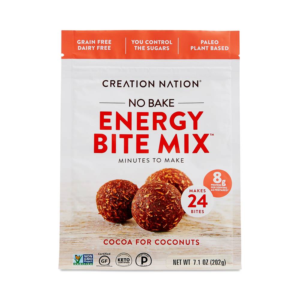 What’s not to love about these no-bake, easy-to-make, protein-packed energy bites? Creation Nation’s “Cocoa for Coconuts” Energy Bite Mix is certified Keto, Paleo, and Vegan, and best of all, its richly chocolate with a crave-able coconut crunch! Powered with organic protein & superfoods, you can rest assured knowing this no-bake mix is gluten & grain free, dairy free, soy free, and preservatives ...