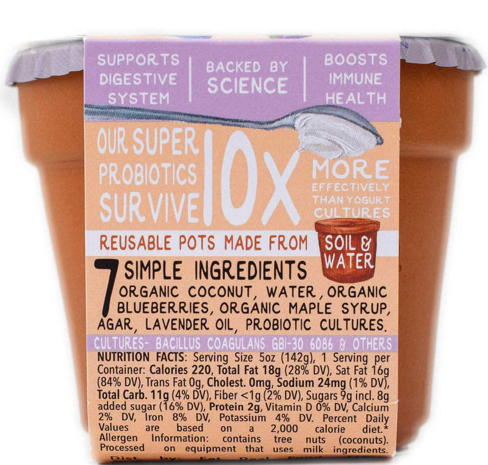 This flavor is forwardly floral in the best way, tasting sweeter and more indulgent than its Nutrition Panel would suggest. Not to be confused with grandma’s perfume, our lavender adds a richness to the blueberry that has to be tasted to be believed. This flavor is for the adventurous. Ingredients: coconut cream (coconuts, water), organic blueberries, pure maple syrup, lavender oil, agar, probiot...