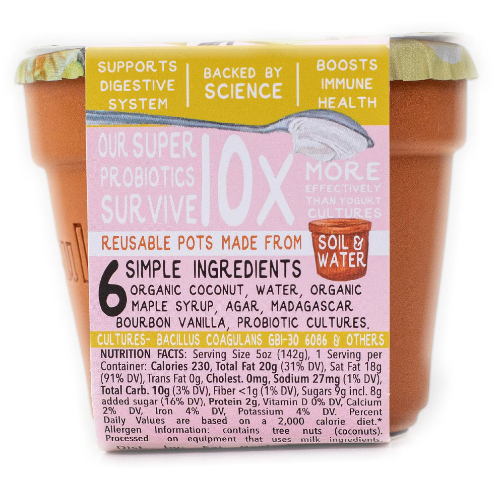 The Bro-Fav, Bourbon Vanilla is right down the middle, appealing to the everyday yogurt eater as well as those with refined palates - we use the most delicious variety of vanilla, straight from Madagascar. This flavor is for the hard-to-please. Ingredients: coconut cream (coconuts, water), pure maple syrup, agar, Madagascar bourbon vanilla, probiotic cultures. Nutritional information here.