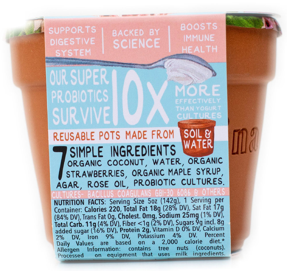 A smooth blend of juicy strawberries and delicate rose, perfectly aromatic and balanced with a touch of pure maple syrup. This flavor is for the fanciful. Ingredients: coconut cream (coconuts, water), organic strawberries, pure maple syrup, rose water, agar, probiotic cultures.