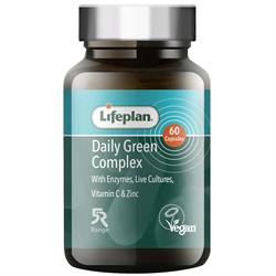 A healthy regime with positive lifestyle and dietary choices sustains wellbeing. Lifeplan's Daily Green Complex includes Wheatgrass, Spirulina, Chlorella, Barley Grass and Acai, boosted with a broad spectrum of enzymes and live cultures. Enhanced with Vitamin C which contributes to the protection of cells from oxidative stress and Artichoke Extract which helps to support digestion.