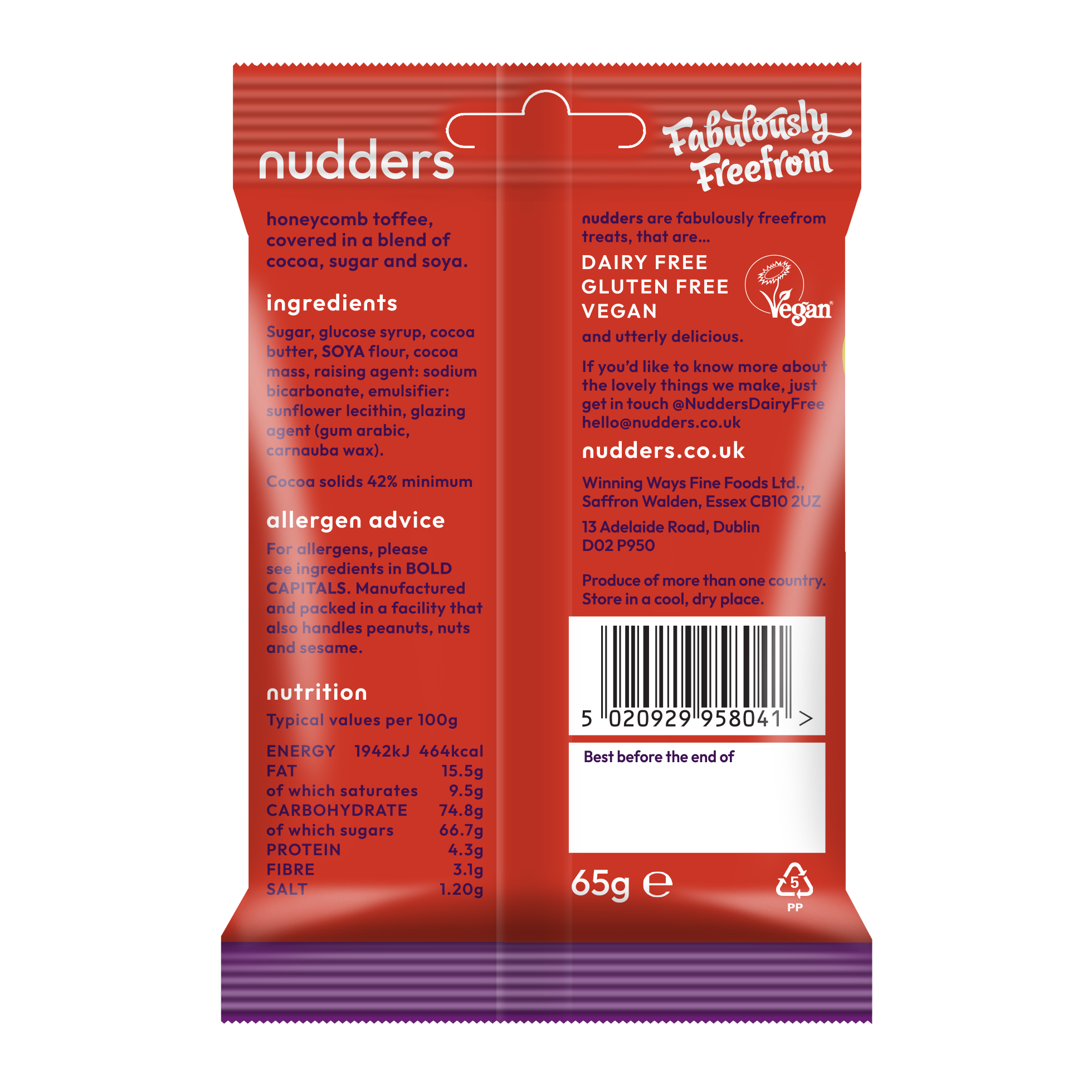Our Chocovered Cinder Honeycomb features light, crunchy pieces of sweet vegan cinder toffee, enveloped in luxuriously creamy soya-based milk chocolate alternative. Savor the finest vegan chocolate honeycomb treat available!