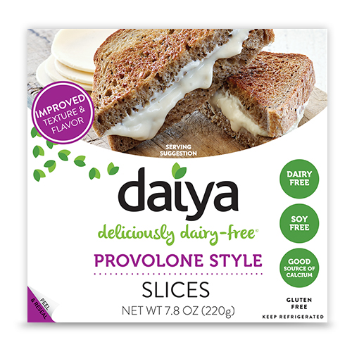 Our Provolone Style Slices offer a wonderful-tasting cheese alternative. They’re new and improved with an updated recipe for an even better taste, texture and melt. Enjoy them with your favorite flatbreads and crackers or try pairing them with a full-bodied red wine. Either option will result in a whole lot of yum. INGREDIENTS: Filtered Water, Coconut Oil, Potato Starch, Tapioca Starch, Vegan Na...