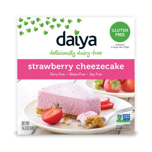 This Strawberry Style Cheezecake is bursting with the sweet, natural flavor of real strawberries. (Mmm strawberries.) The taste will linger on your tongue but NOT on your plate. Ingredients filling (filtered water, creamed coconut, cane sugar, coconut oil, tapioca starch, non-gmo expeller pressed: canola and/or safflower oil, strawberries, potato starch, pea protein isolate, vegan natural flavors...