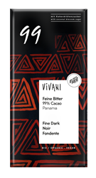 Dark 99% - The new organic chocolate for genuine cocoa lovers VIVANI has just launched a particularly "high percent" chocolate bar onto the market: "Dark 99%". The new flavour is made exclusively with top-quality Panama cocoa. This gives it a very mild taste despite the high cocoa content. It is less acidic and less bitter and is characterised by a fine "melt-in-the mouth" sensation. The fact tha...