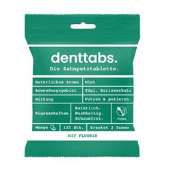 Denttabs Mint toothpaste tabs with fluoride for adults go beyond brushing: They polish your teeth until they're smooth, thanks to the high content of cellulose. Developed by dentists. Natural, sustainable, foam-free. While most of Georganics products are fluoride-free, some customers have requested fluoride options. Instead of developing our own, we've partnered with the best in the industry (De...
