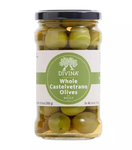 Whether you enjoy them whole for charcuterie boards for halved for salads, Divina Castelvetrano Olives are a superior choice. Named for an area in Sicily where they’re grown with care, these tender bright green bites have a natural hint of artichoke for added flavor and uniqueness. Made only with real olives, water, salt, and lactic acid. Ingredients Olives, water, salt, lactic acid (Acidity Reg...