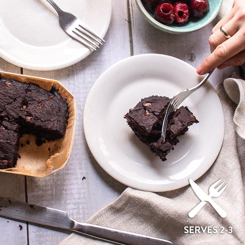 Rich & indulgent Double Chocolate Brownie. Enjoy with a big spoon of vanilla ice cream, or straight from the tray with a hot cup of coffee. 250g - Serves 2/3