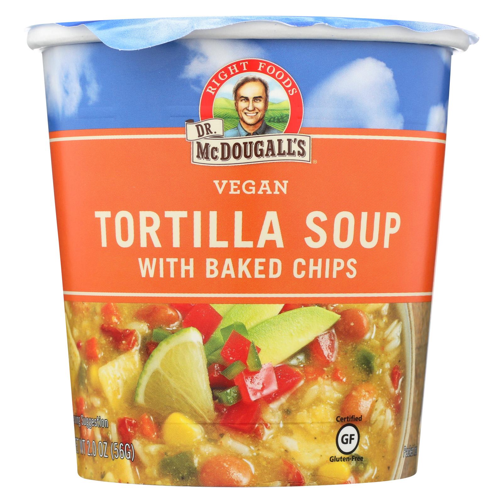 Pour several into a soup tureen and tell people that you made Tortilla Soup from scratch! Our Tortilla Soup with Baked Tortilla Chips tastes amazingly like home-made. Little tortilla chips and a few pinto beans swim in a vegan chicken flavored broth seasoned with lime, mild New Mexico chili powder, and onion. It’s not too spicy hot, but has just a kick of authenticity. Tasty and fun – a gluten fre...