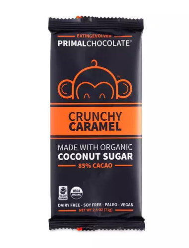 Caramelized Coconut Sugar + Organic Cacao = Perfection. We are proud to introduce the cleanest crunchy caramel available anywhere. The toasted caramel blends perfectly with our rich, nutty cacao. *85% Rainforest Alliance Certified Ingredients SKU: 748252203731 Ingredients Organic Cacao, Organic Coconut Sugar, Organic Cacao Butter, Organic Maple Syrup.
