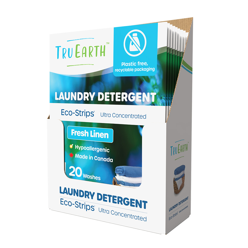 Tru Earth Eco Laundry Strips Fresh Linen, 20 strips. Hypoallergenic. Easy to use. 1 Strip = 1 load. Plastic and jug free