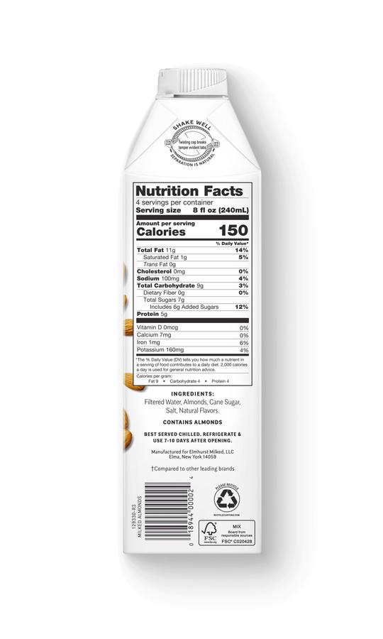 Imagine almond milk that actually tastes like almonds. Well, we made it! Our trick? Shelf-stable: no refrigeration needed until opened Once opened, refrigerate and consume within 7-10 days Up to 4x more nuts per serving Made with 5 ingredients 5g protein per serving MORE BENEFITS