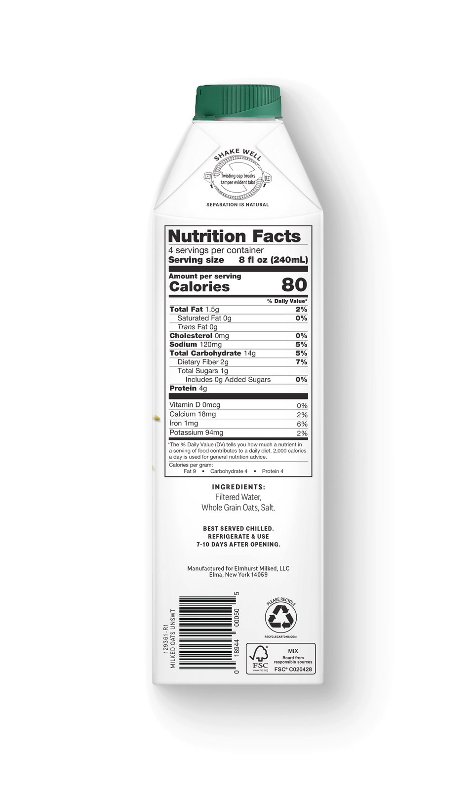 Just oats and water deliver a full serving of whole grain in simpler, better form. Shelf-stable: no refrigeration needed until opened Once opened, refrigerate and consume within 7-10 days 20g whole grain per serving (Whole Grains Council stamped) Made with 3 ingredients – oats, water, and salt No added gums or emulsifiers Vegan, dairy-free Carrageenan-free, gluten-free No artificial flavors Non-G...