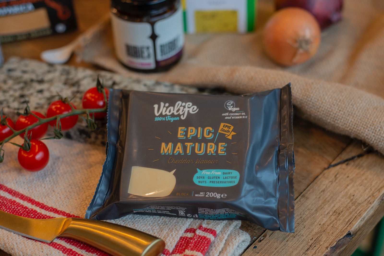 Ingredients: Water, Coconut Oil (24%), Non-GMO Modified Starch, Starch, Sea Salt, Lentil Protein, Mature Cheddar Flavour, Acidity Regulator (Lactic Acid), Olive Extract, Colour (B-Carotene), Vitamin B12