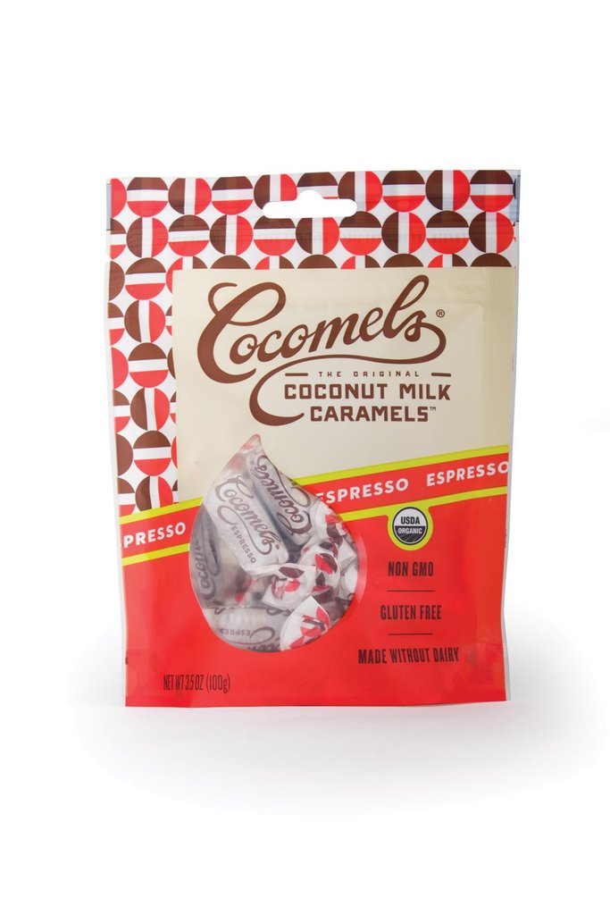 High quality, locally roasted, organic espresso beans give this Cocomel a delicious coffee flavor combined with the sensuous, melt away Cocomel experience. No "natural flavors" here, just real coffee. The amount of caffeine per piece is approximately equivalent to 1/40th of a cup of coffee. Cocomels are award-winning, smooth and creamy caramels made with coconut milk instead of dairy. They are ...