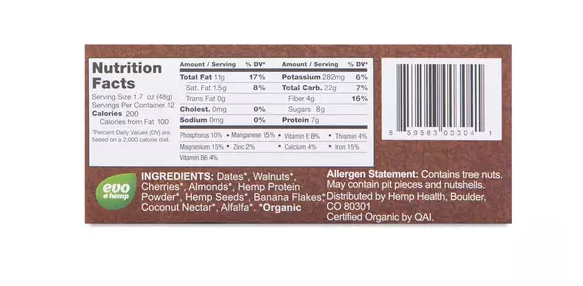 Evo Hemp Antioxidant bars are armed with flavanols, naturally found in blueberries, that serve as antioxidants to protect your body from the damage of free radicals. Ingredients Dates*, Cashews*, Apricots*, Hemp Protein Powder*, Hemp Seeds*, Cacao Powder*, Coconut Nectar*, Blueberries*. *Organic.