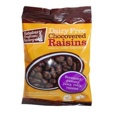 Lovely juicy raisins covered with dairy free chocolate, in a handy size bag. Loved as a healthier treat for kids and adults. Also great in baking, for cakes and treats. Sweet and juicy raisins with a delicious dairy-free chocolate coating made from a luxurious blend of cocoa, raw sugar and soya. Vegetarian and vegan friendly, they're perfect too for anyone suffering from lactose or casein intolera...