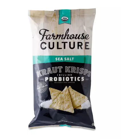 Farmhouse Culture is known for their fresh, unpasteurized packets of sauerkraut that are brimming with flavor and gut-healthy probiotics. And now they’ve taken kraut to the next level by putting it in a tortilla chip. Sauerkraut and masa are the main ingredients in the new Farmhouse Culture Sea Salt Kraut Crisps, which are also flavored with natural herbs and feature a plant-based probiotic strain...
