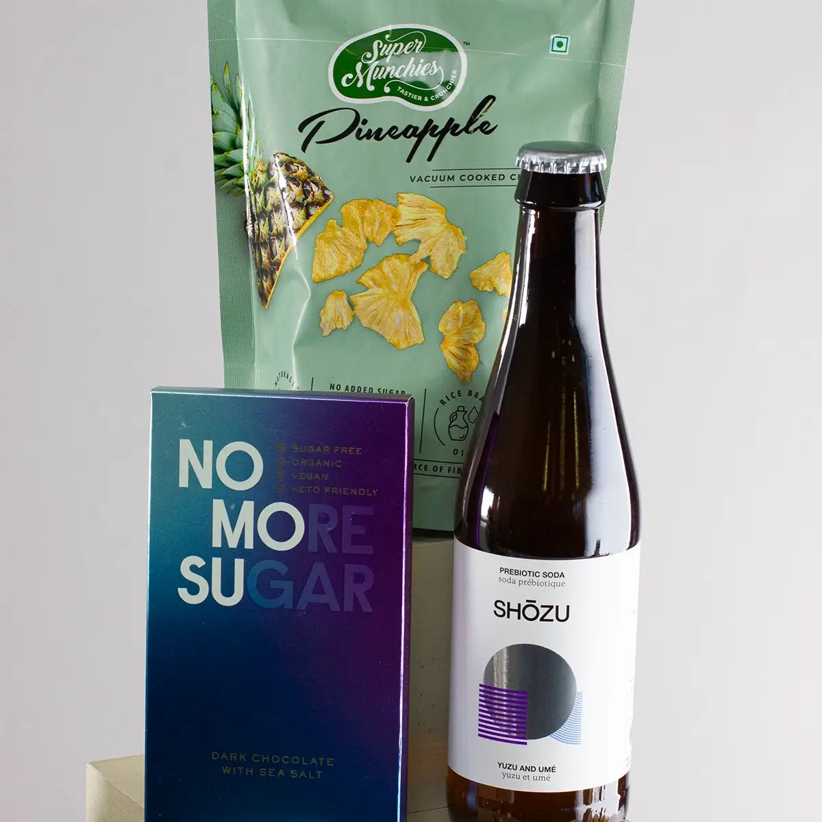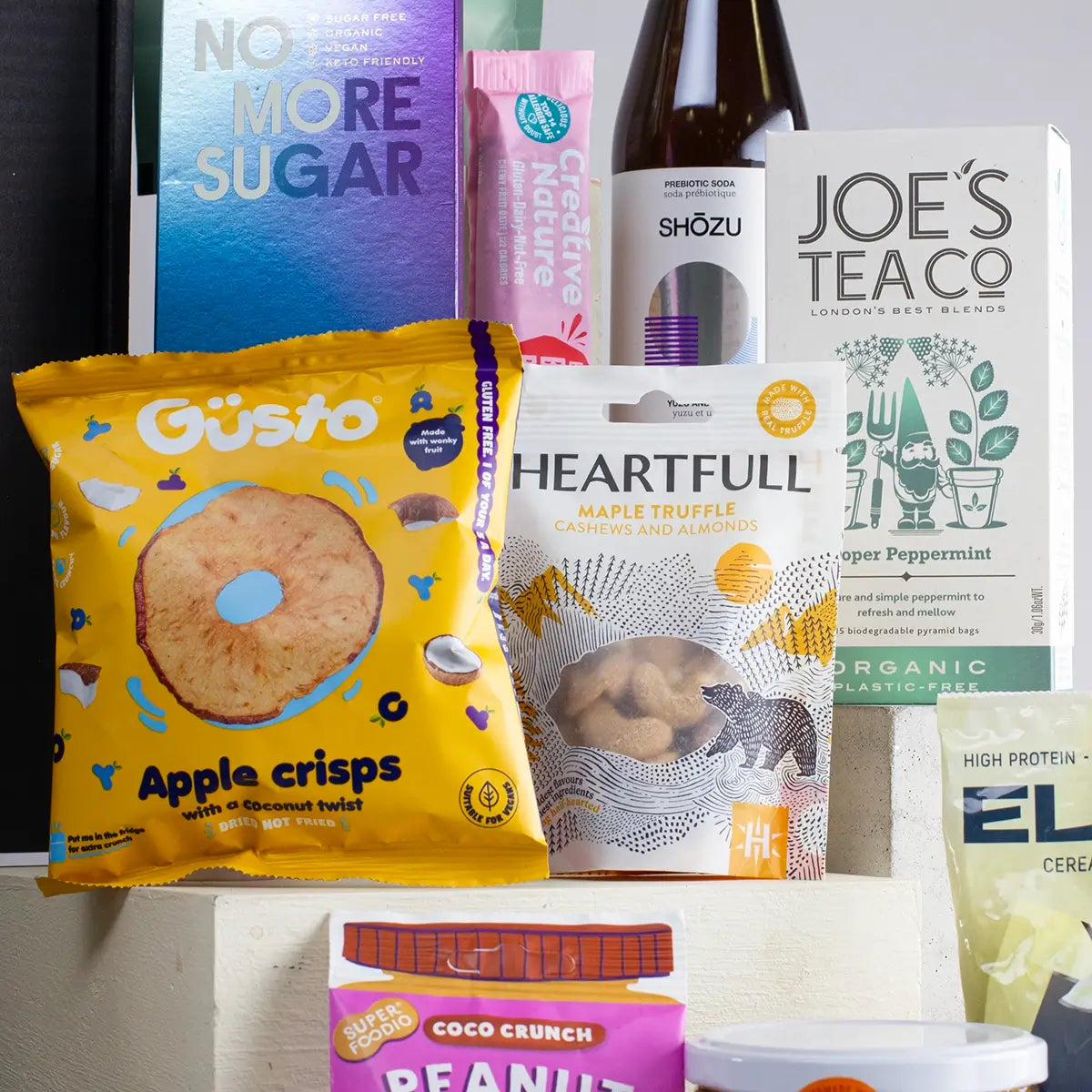 Our Healthy Gift Box is a pick me up or hug in a gift, including healthy drinks, snacks and treats; it's the perfect Father's Day present for a Dad who likes to look after himself. While the specific items may vary, each box is designed to include an assortment of vegan delights, carefully selected for their quality and flavour. From revitalising snacks to soothing teas, and even prebiotic sodas for a refreshing lift, this gift box offers a symphony of taste and nourishment