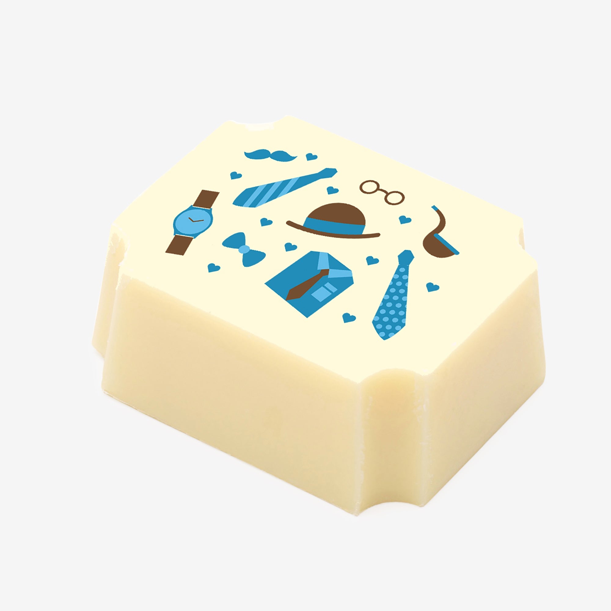 A luxury selection box of 25 filled artisan chocolates, featuring two special 'Father's Day' themed chocolates. Made with natural ingredients and hand-decorated with cocoa butter.