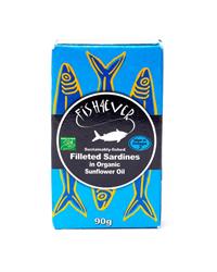 Sustainably-fished filleted sardines in organic sunflower oil. No bones. With skin. Fairly traded.