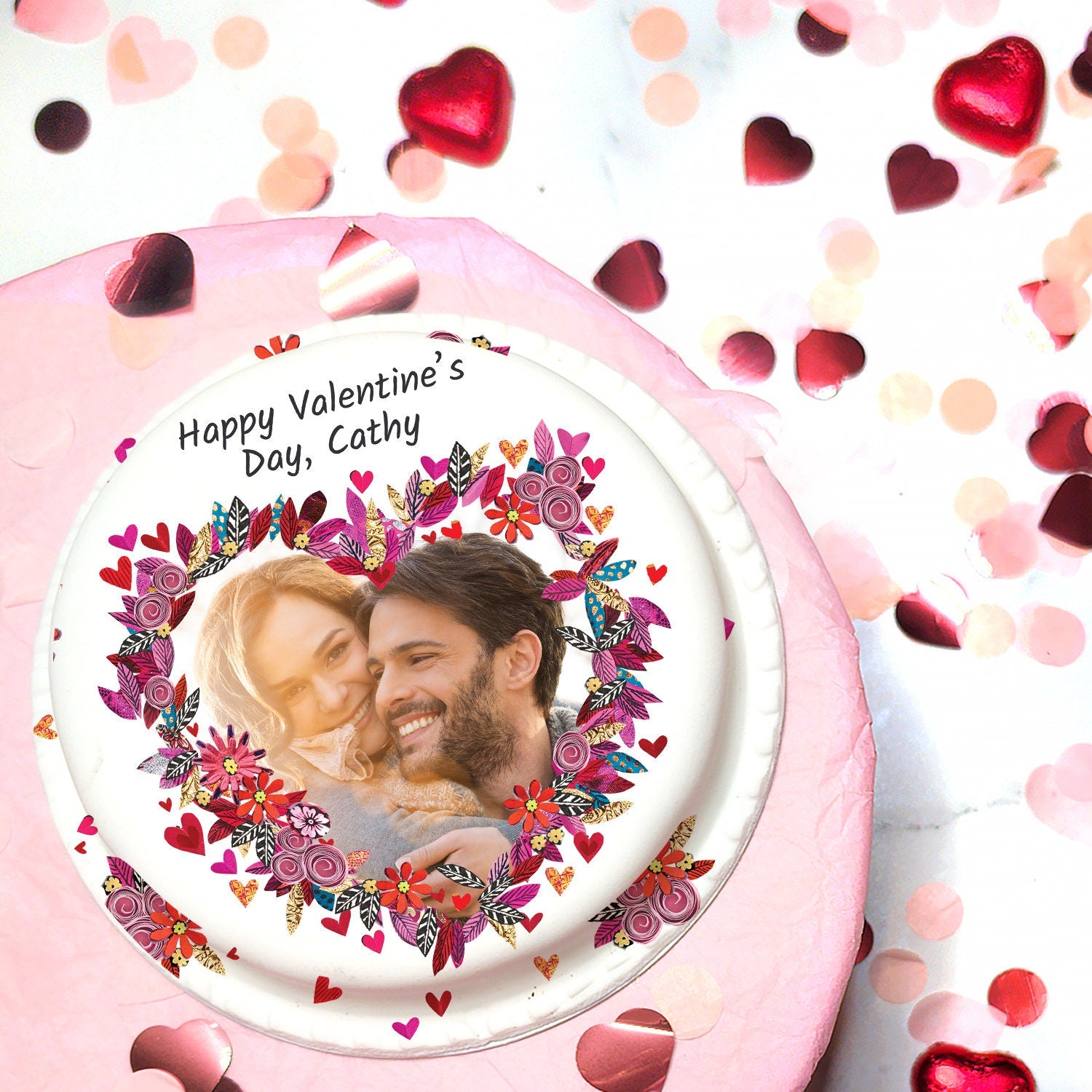 Upload your photo and personalise the text on this Floral Heart Photo cake, a lovely way to celebrate your anniversary with your special someone.