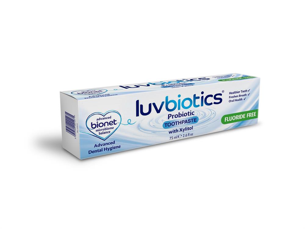 Luvbiotics Original Toothpaste with Oral Probiotics & Xylitol -Promotes Healthy Oral Microbiome for Fresh Breath, Healthy Gums & Teeth- Free from Fluoride, SLS - 75ml Product Description Luvbiotics Fluoride free Original toothpaste uses bio net technology powered by probiotics and xylitol with natural ingredients, to promote healthy orl microbiome and balance oral flora for a happier, healthier mo...