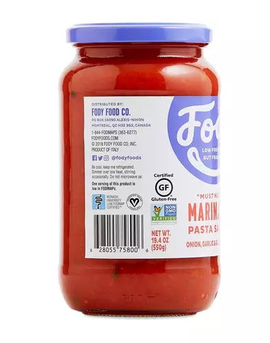 Pasta, pizza, meatball subs—enjoy your favorite foods even with IBS. Fody Foods Marinara Sauce is part of a low FODMAP diet with no gluten, garlic, or onion, so it won’t aggravate sensitive stomachs. WIth a taste fresh from Italy, it has simple ingredients such as chopped tomatoes, extra virgin olive oil, tomato paste, carrots, celery, and basil. Ingredients Chopped Tomatoes, Tomato Paste, Extra...