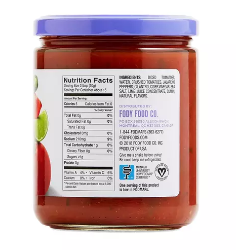 You can still spice things up, even if you have IBS. Fody Foods Mild Salsa is certified low FODMAP by Monash University and is gluten-free, so it’s ideal for those with digestive issues. It contains natural ingredients like diced and crushed tomatoes, water, jalapeno peppers, cilantro, cider vinegar, sea salt, lime juice concentrate, and cumin. Ingredients Diced tomatoes, water, crushed tomatoes,...