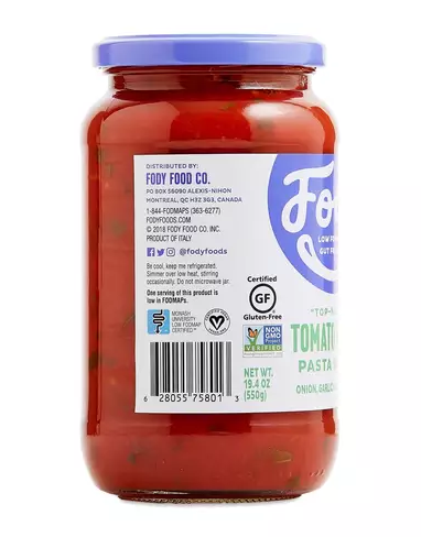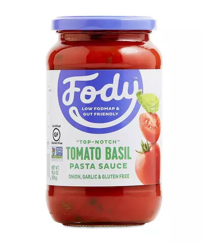 Get a taste of Italy without a trip to the bathroom with Fody Foods Tomato Basil Sauce. The recipe is gluten-free and certified low FODMAP by Monash University so it won’t aggravate IBS symptoms. Great for pasta, it’s made with simple ingredients such as chopped tomatoes, extra virgin olive oil, tomato paste, and basil, plus no onion or garlic. Ingredients Chopped Tomatoes, Tomato Paste, Extra V...