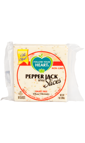 Blended with green jalapeños and sweet red bell peppers, this creamy cheese will add a zesty kick to your favorite dishes. Our Pepper Jack cheese alternative is great melted in quesadillas and spices up any sandwich. Filtered Water, Coconut Oil, Modified Potato and Corn Starches, Potato Starch, Sea Salt, Green and Red Jalapeño Peppers, Natural Flavor (Plant Sources), Olive Extract.
