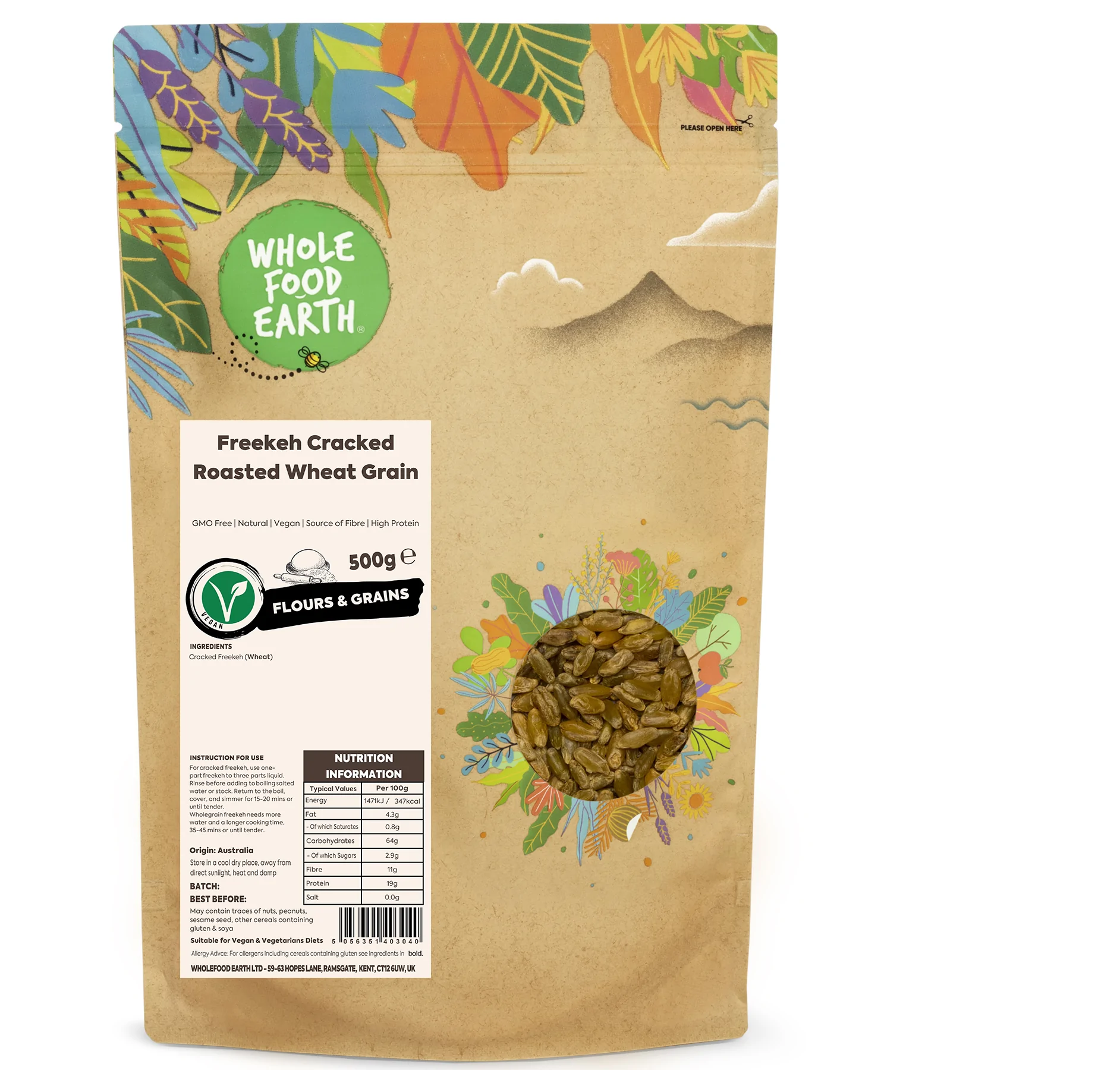 Freekeh Cracked Roasted Wheat Grain is GMO - Free, Vegan, Dairy Free, No Added Sugar