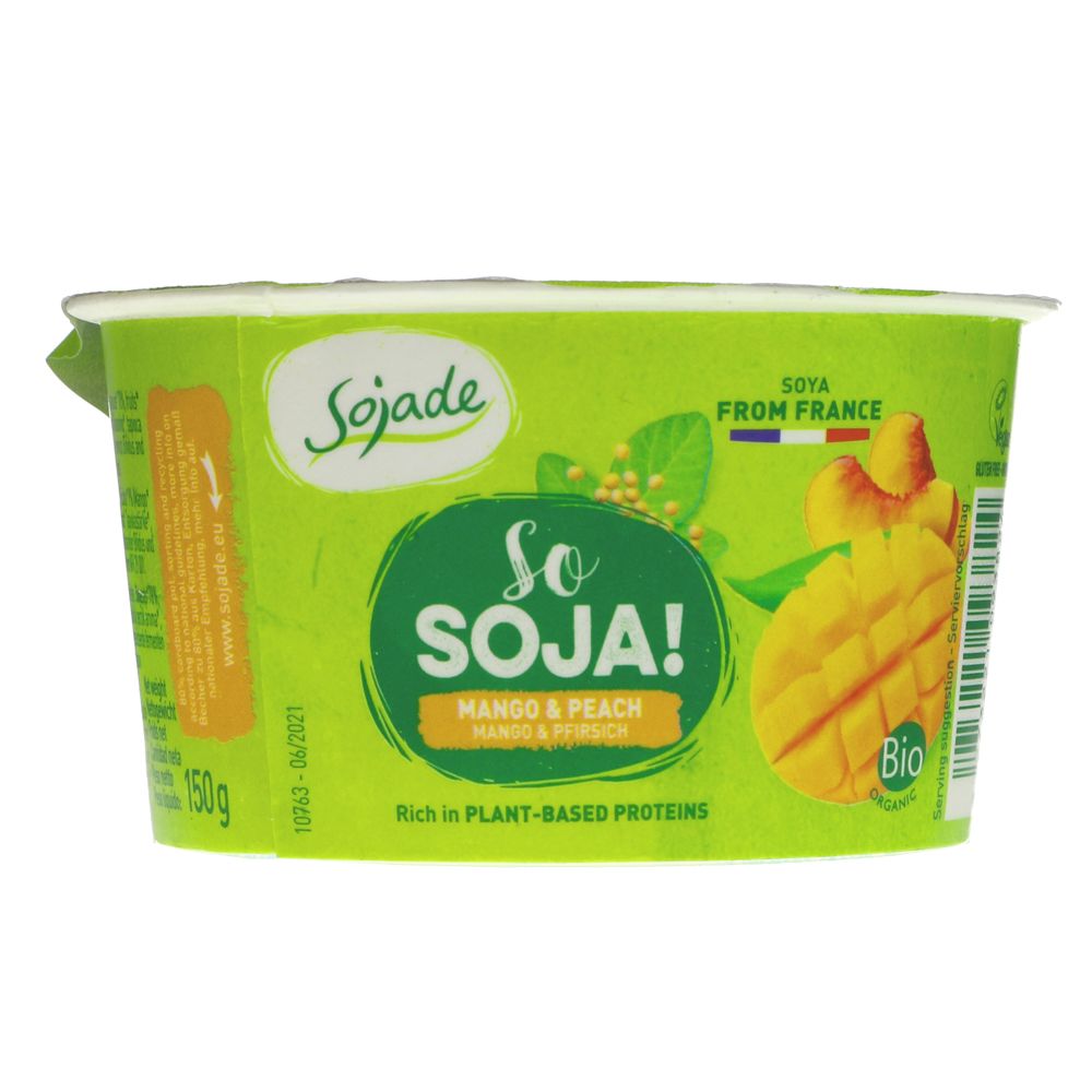 Ingredients: Organic Soya Drink (78%) Organic Fruits (9%) [Mango (6.5%), Peach (2.5%)], Organic Raw Cane Sugar, Organic Natural Peach Flavouring, Organic Natural Mango Flavouring, Organic Tapioca Starch, Organic Concentrated Lemon Juice, Locust Bean Gum, Selected Live Cultures [Bifidus and Lactobacillus Acidophilus]
