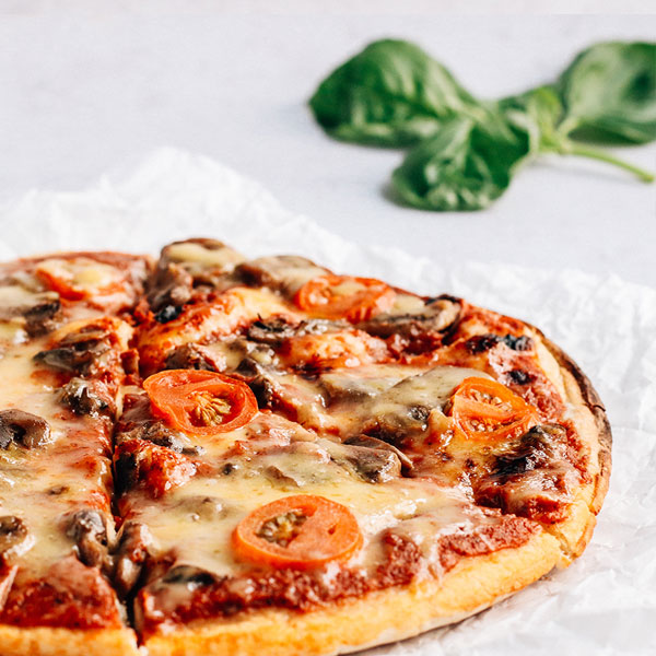 One Planet Pizza’s hand crafted artisan pizza with homemade tomato sauce, exotic garlic roasted mushrooms and cherry tomatoes, topped with mature cheddar style cheezly. **please note this item is discounted as it has exceeded its best before date, although still safe to consume it may affect the quality.