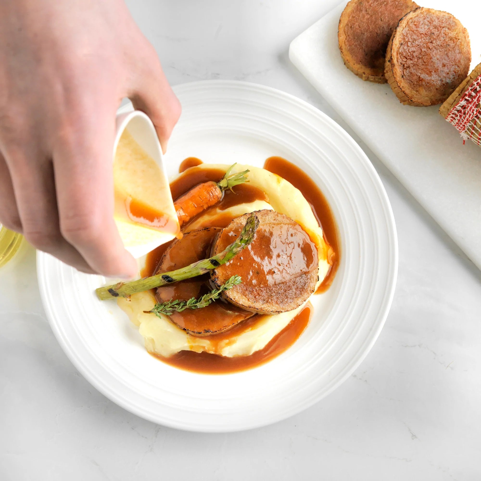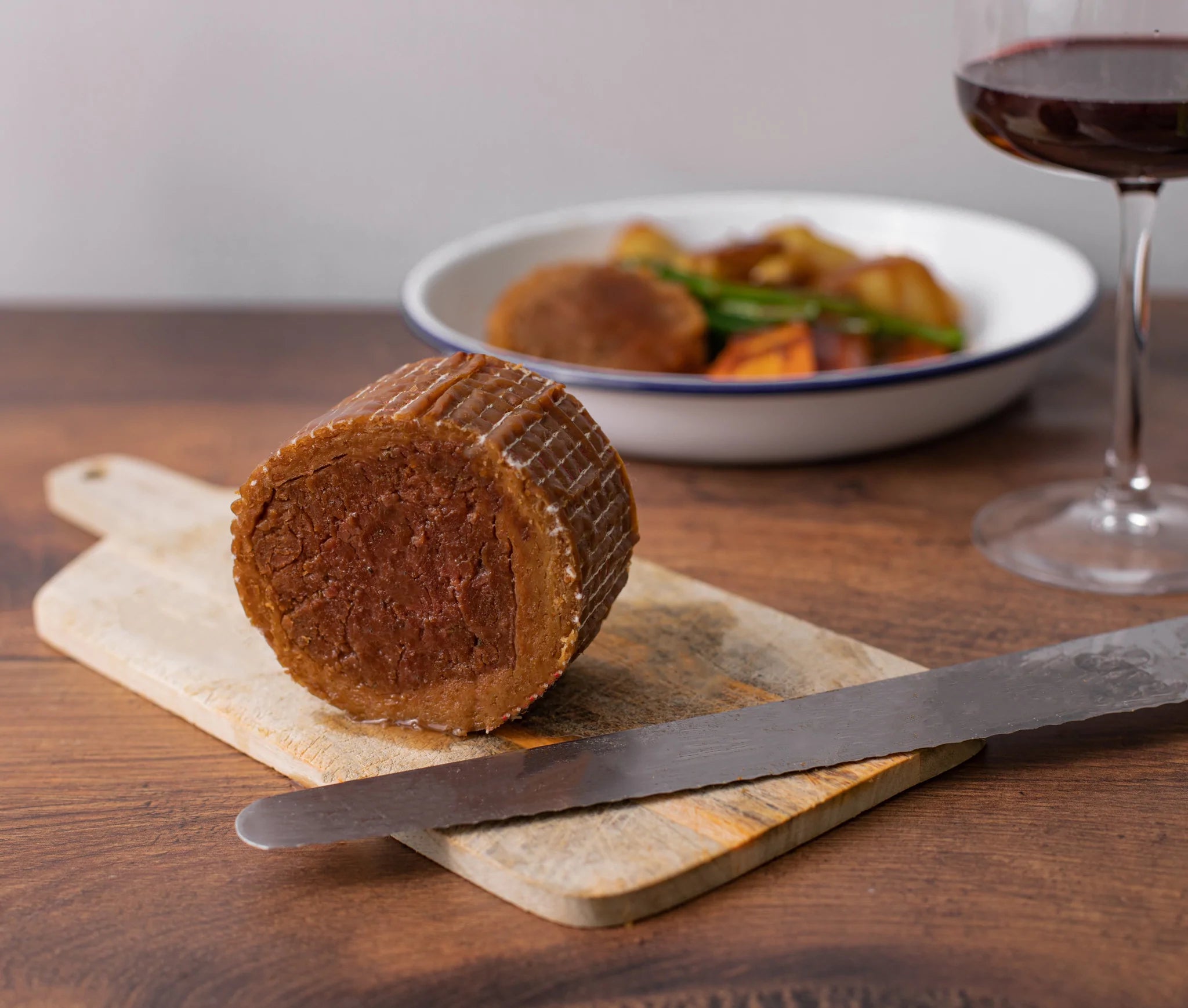 Featuring a chicken-style fillet, filled with homemade garlic and rosemary sausage stuffing, this is a roast dinner centrepiece to die for. Smother it in gravy, add roasted roots and veggies, sit back and enjoy a stress free, flavourful, luscious feast!
