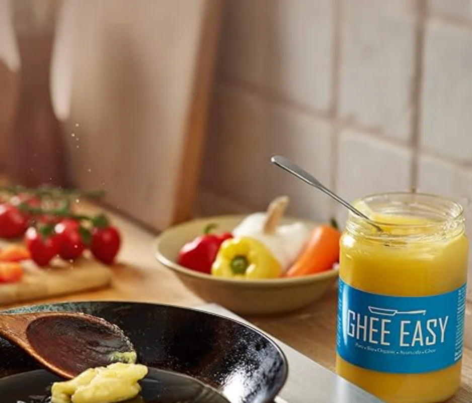 Ghee Easy is a perfect cooking oil for high temperature. is made from 100% clarified butter sourced from organically raised cows. It offers a rich, pure taste and can be heated up to 250°C without burning, making it ideal for healthy cooking.