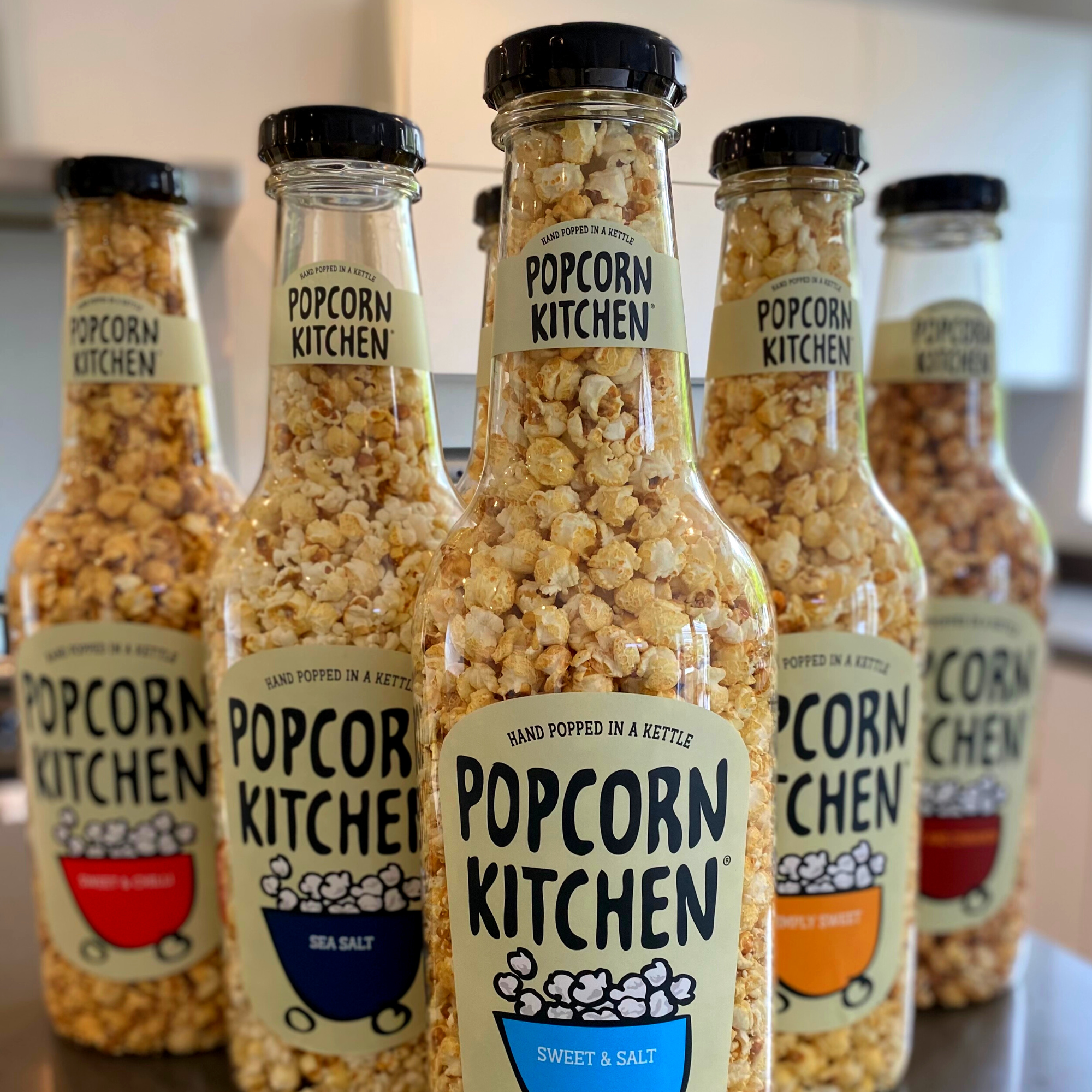 Our bestselling Giant Moneybox bottle filled with gourmet 'mushroom' corn, which is hand-popped in olive oil and then sprinkled with sea salt for a subtle, savoury flavour.