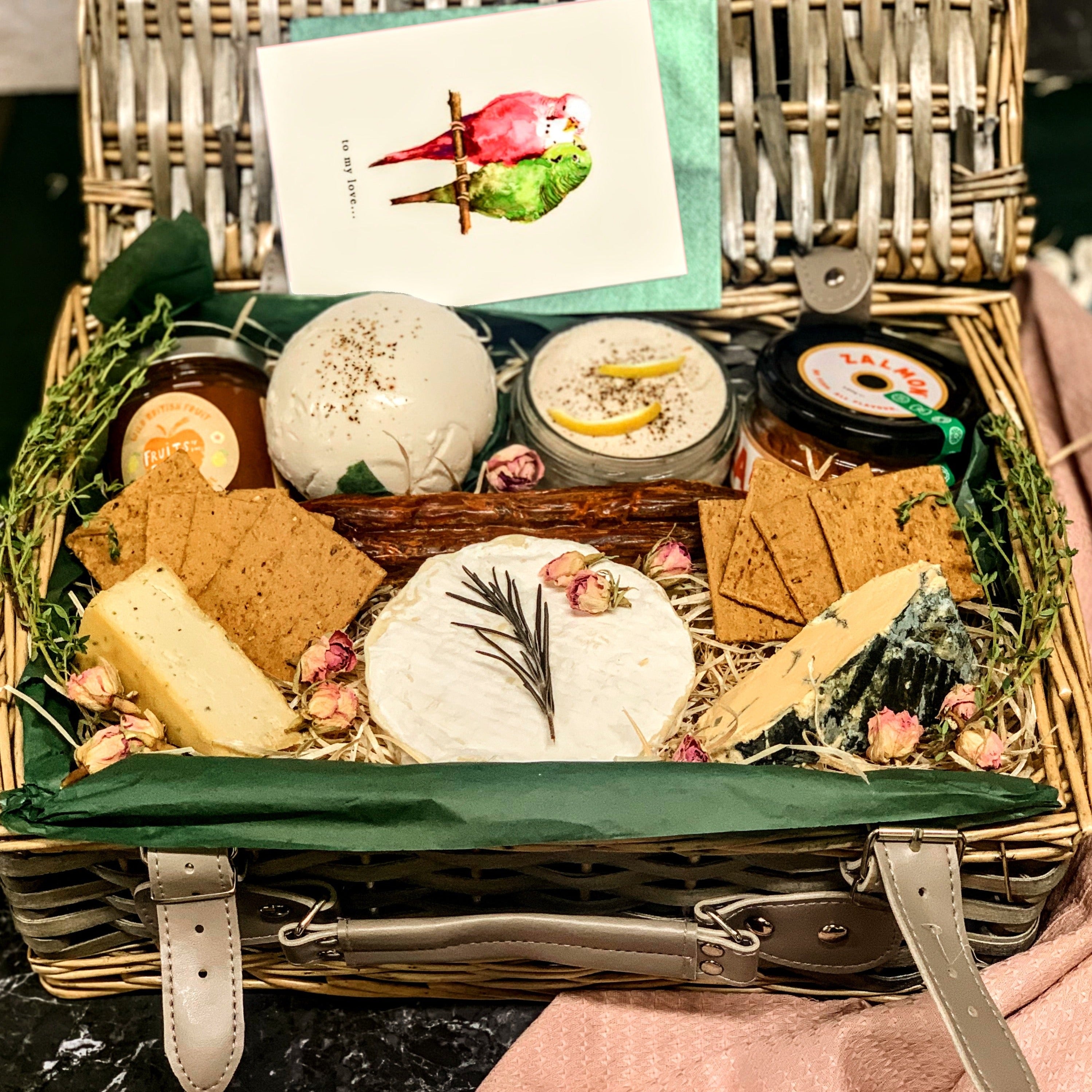 This wrapping service will include a beautiful wicker basket to store your hamper, lined with wood wool and coloured giftwrap paper.
