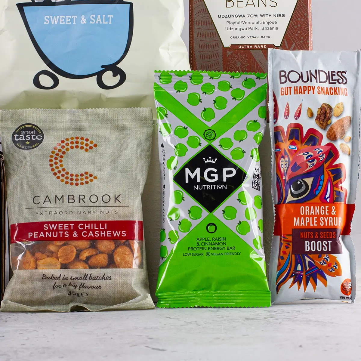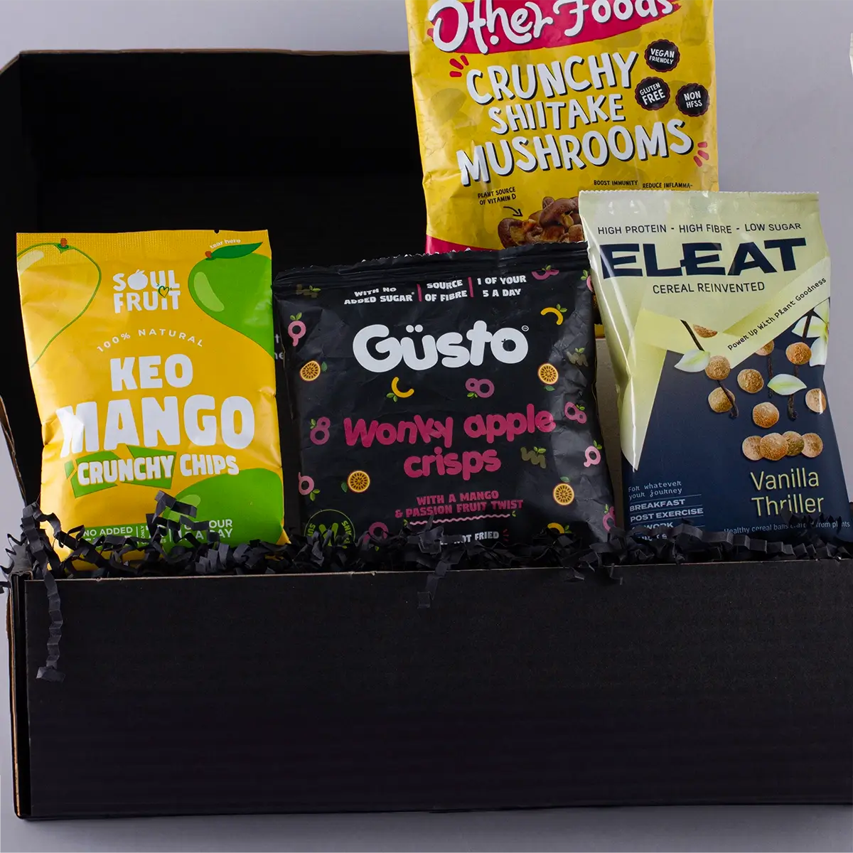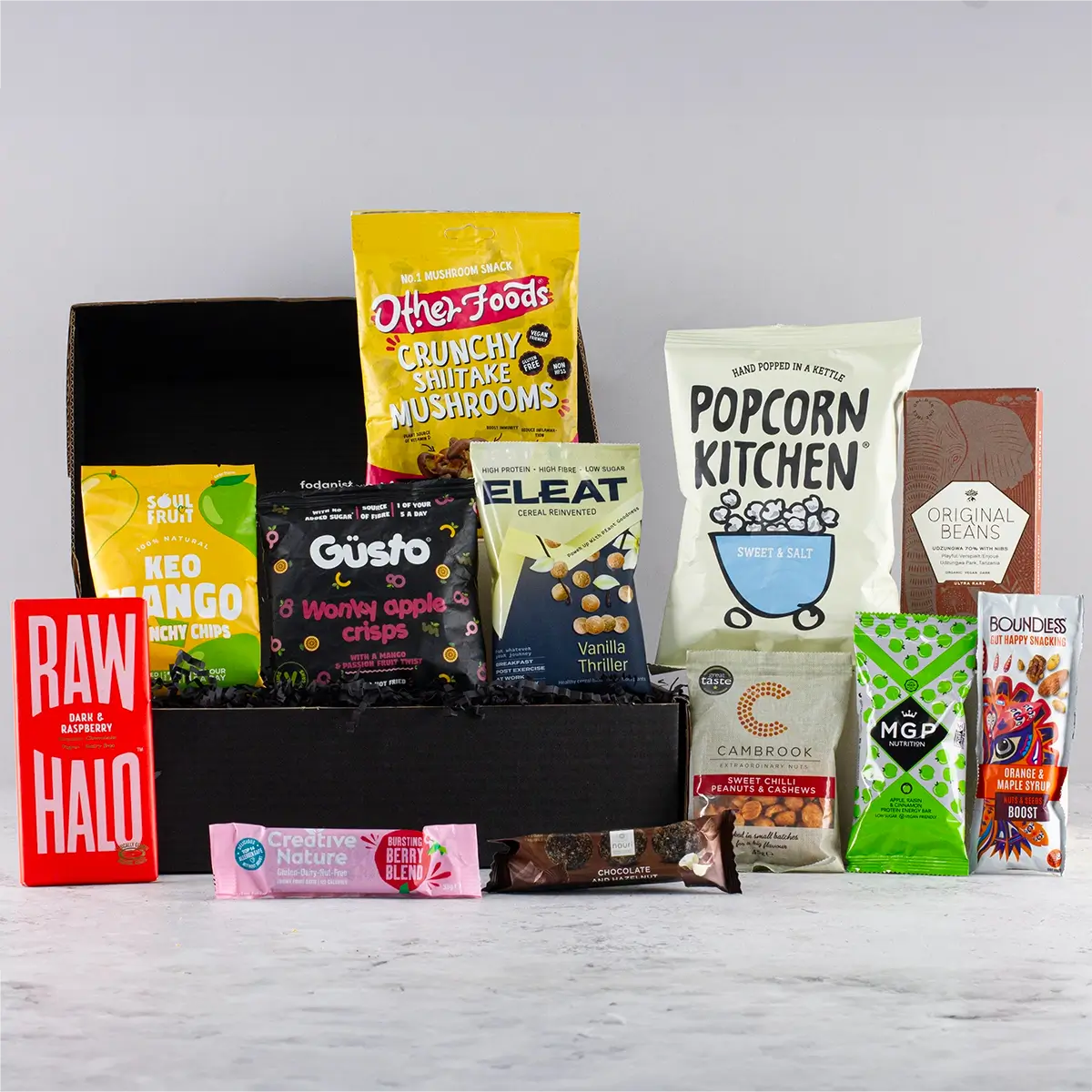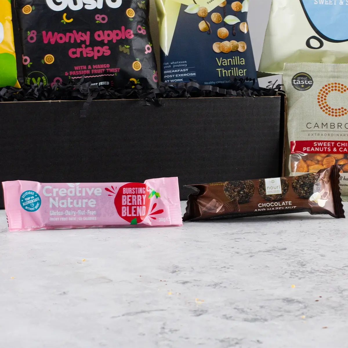 Indulge in an irresistible selection of gluten-free vegan snacks meticulously curated to delight every palate. Our vegan snack box is a celebration of plant-based goodness where every treat bursts with flavour and is designed for guilt-free snacking by the health-conscious. Perfectly suited for birthdays, anniversaries, or simply as a thoughtful gesture, this exquisite gift hamper combines an array of artisan delights – from nutrient-rich fruit bars and crunchy nut clusters to decadently smooth chocolates and savoury olives. Each element of this plant-based snack box is chosen to meet vegan and gluten-free requirements without compromising on taste, offering a sensory adventure that spans from crisp, crunchy textures to velvety smooth sensations. Enjoy the balanced blend of natural sweetness with a hint of savoury zest, as every bite promises not only delicious indulgence but also a boost in fibre, antioxidants, and essential vitamins. Whether you’re seeking vegan snacks to purchase for a loved one or exploring the world of plant-based snack boxes, this hamper artfully marries gourmet craftsmanship with nutritional benefits. Its elegant presentation renders it as visually appealing as it is satisfying, transforming everyday moments into celebrations of health and flavour. Designed with care and catering to those with specific dietary needs, it invites you to enjoy a burst of energy and a symphony of taste that elevates any occasion and redefines the art of gifting. Every element is an invitation to experience quality and delight in every bite, making it the ultimate choice for anyone who values both nutrition and indulgence.