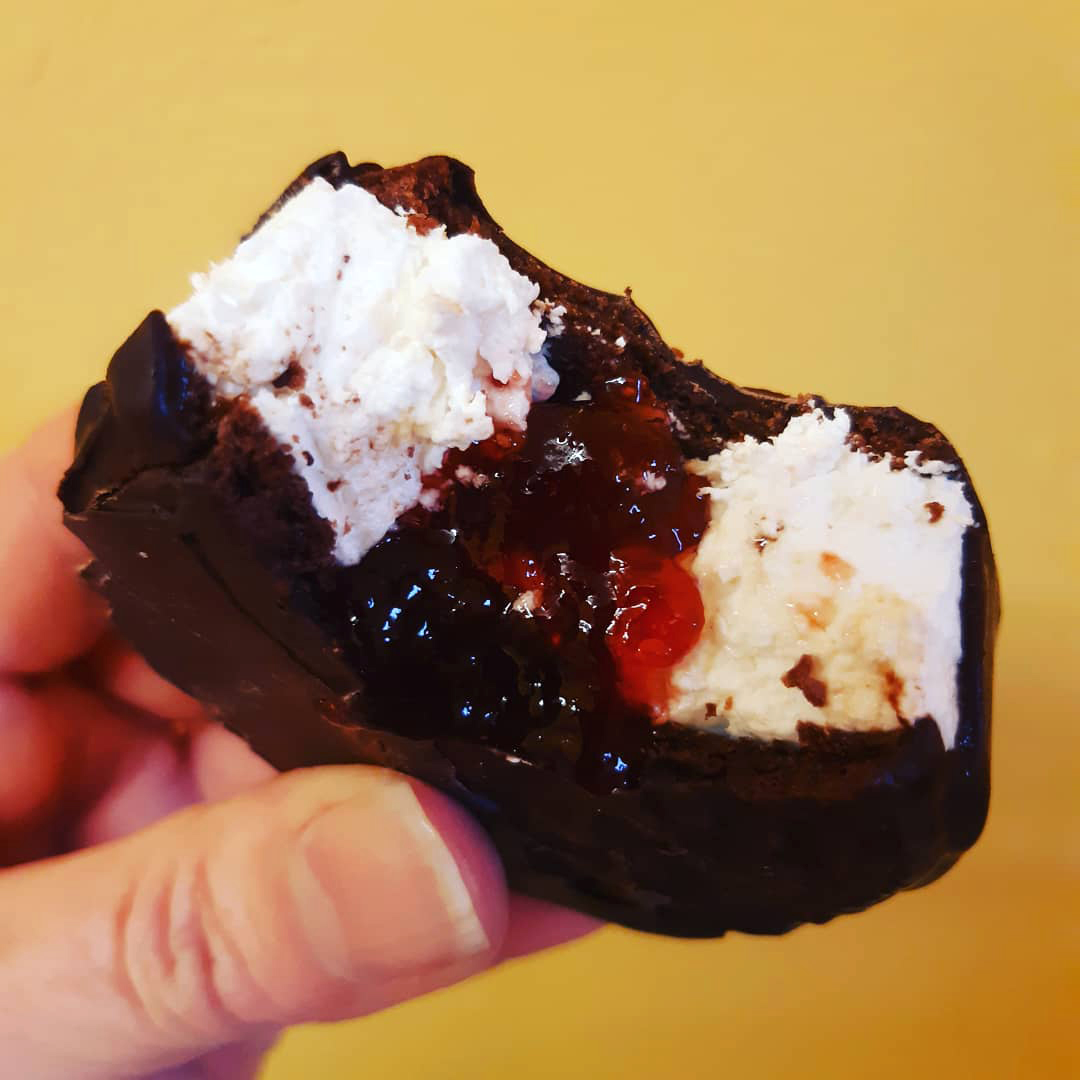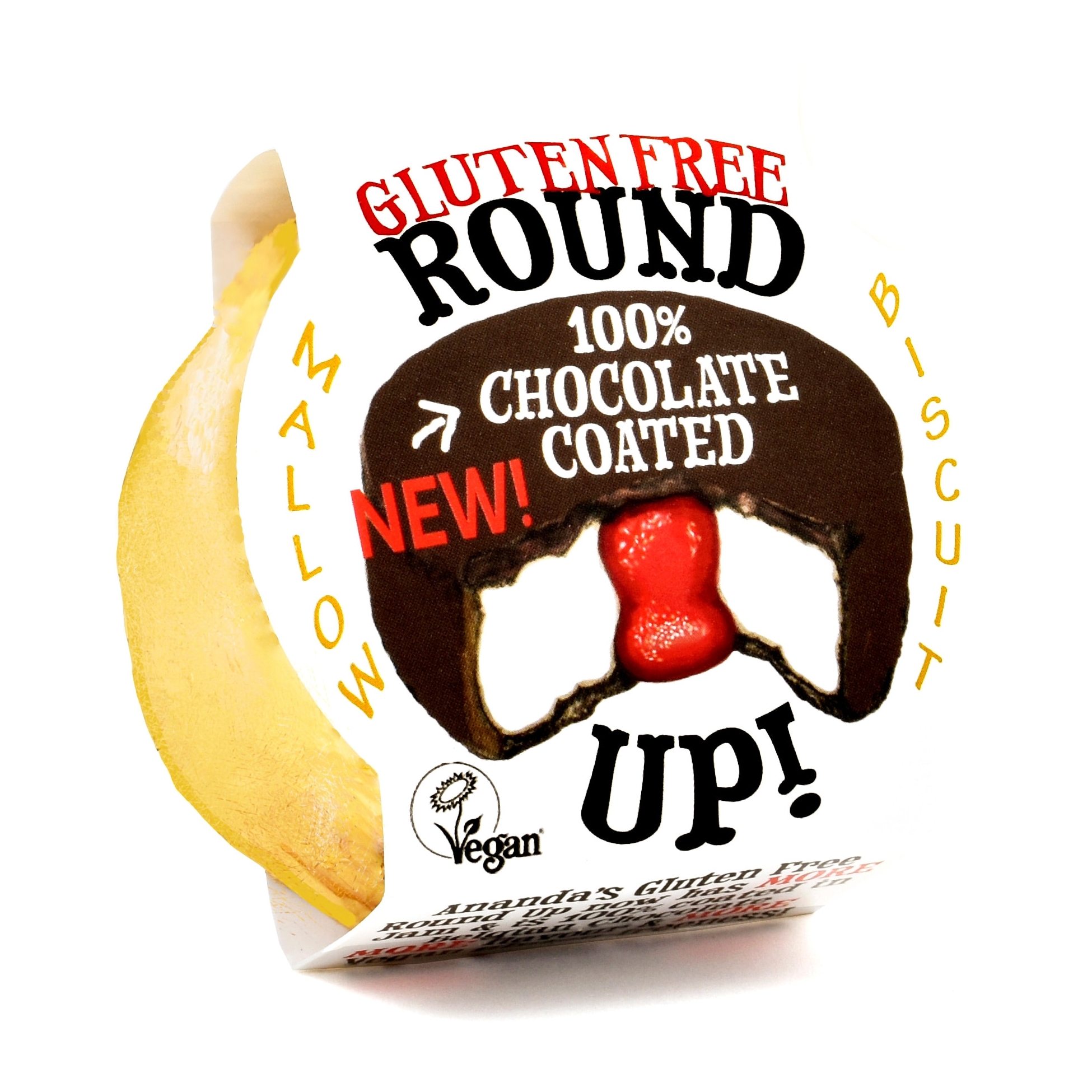 We have created a Round Up for everyone. Wheat, gluten, dairy and gelatine free. Believe it or not - there’s no difference in taste, but the difference is vital for those with gluten intolerance! Sublime gelatine free vanilla marshmallow, thickly sandwiched between two handmade chocolate gluten free biscuits, with a generous centre of premium strawberry jam and now fully coated in pure Belgian chocolate.