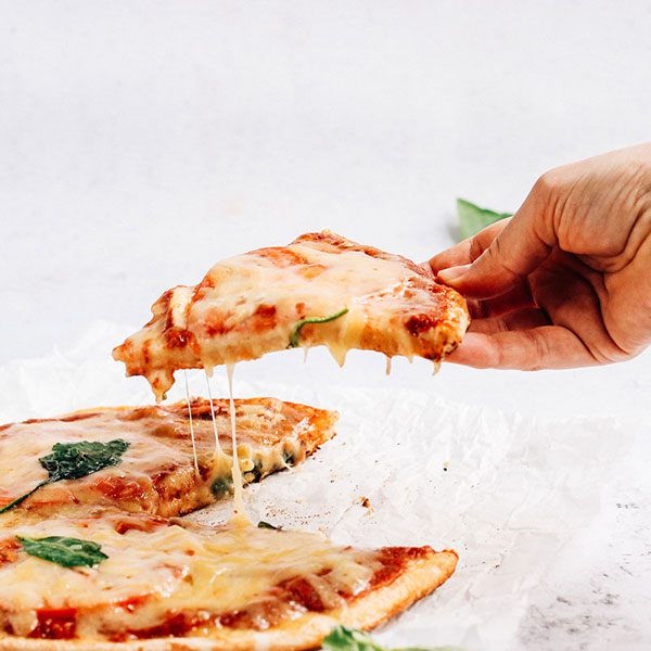 The Lab Gluten Free Base (Gram Flour, Corn Starch, Rice Flour, Tapioca Starch, Sugar, Psyllium Fibre, Salt, Thickener: Guar Gum And E464, Rapeseed Oil, Yeast), Tomato Sauce (Tomatoes, Chia Seeds, Salt, Garlic, Basil, Oregano), Tomatoes, Red Cheddar Style Cheezly (Water, Coconut Oil, Potato Starch, Yeast Extract, Salt, Natural Flavouring, Sea Salt, Carrageenan, Calcium Chloride, Calcium Phosphate, Natural Colour: Carotene), Applewood Vegan Cheese (Water, Coconut Oil, Potato Starch, Modified Maize Starch, Yeast Extract, Natural Flavouring, Thickener (Carrageenan), Calcium Phosphate, Smoke Flavouring, Calcium Chloride, Colour (Carotenes), Vitamin B12), Mozzarella Style Cheezly (Water, Coconut Oil, Potato Starch, Modified Maize Starch, Yeast Extract, Salt, Natural Flavouring, Sea Salt, Carrageenan, Calcium Chloride, Calcium Phosphate, Natural Colour: Carotene), Spinach.