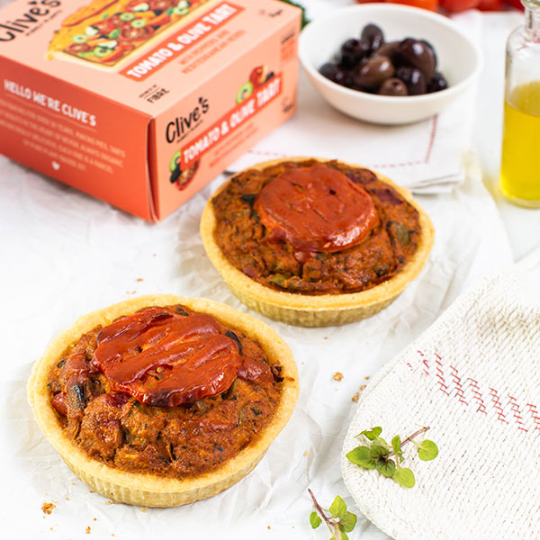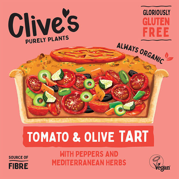 Gluten free pastry case filled with tomatoes, olives, courgettes and peppers. The ultimate eggless quiche! This light tart has the ripe taste of summer all year round. Wonderful with fresh salads and crusty bread.